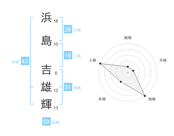 浜島 吉雄輝さんを姓名の画数から五運を鑑定