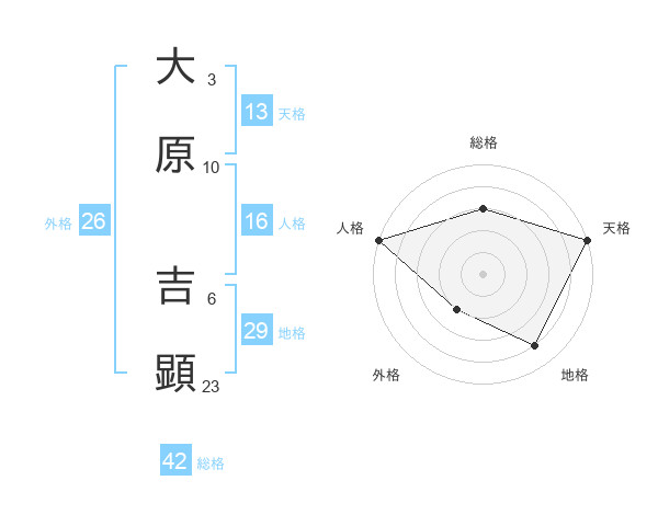 大原 吉顕さんの天格は13画の5点!