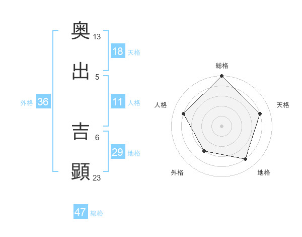 奥出 吉顕さんの総格は47画の5点!