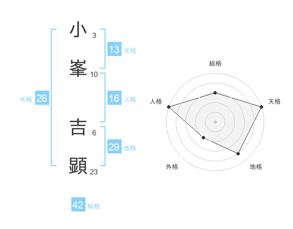 小峯 吉顕さんの総格は42画の3点!