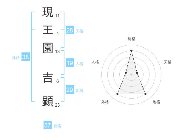 現王園 吉顕さんを姓名の画数から五運を鑑定