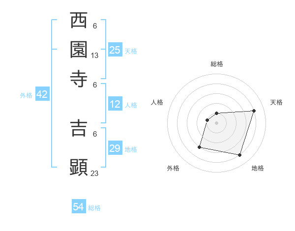西園寺 吉顕さんを姓名の画数から五運を鑑定