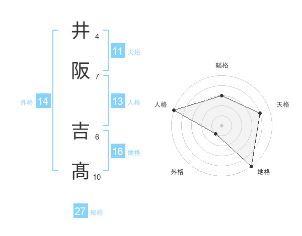 井阪 吉髙さんを姓名の画数から五運を鑑定