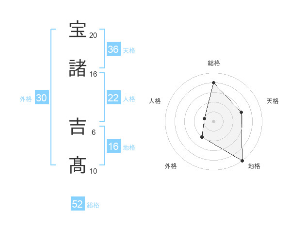 宝諸 吉髙さんの総格は52画の4点!