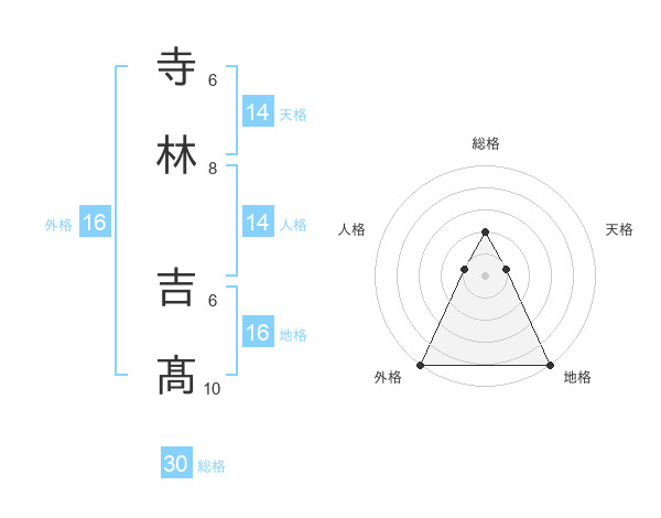 寺林 吉髙さんの総格は30画の2点!