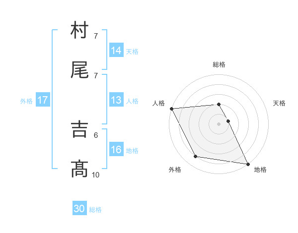 村尾 吉髙さんを姓名の画数から五運を鑑定