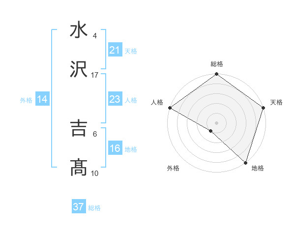 水沢 吉髙さんの総格は37画の5点!