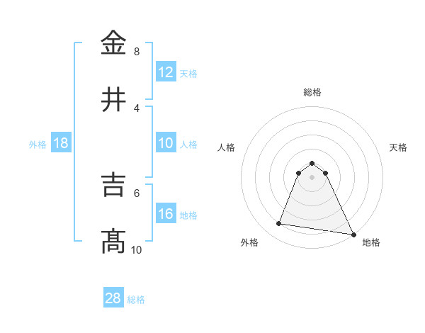 金井 吉髙さんを姓名の画数から五運を鑑定
