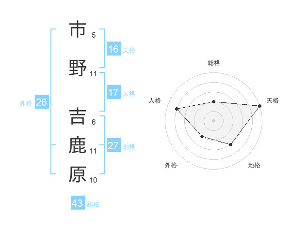 市野 吉鹿原さんを姓名の画数から五運を鑑定