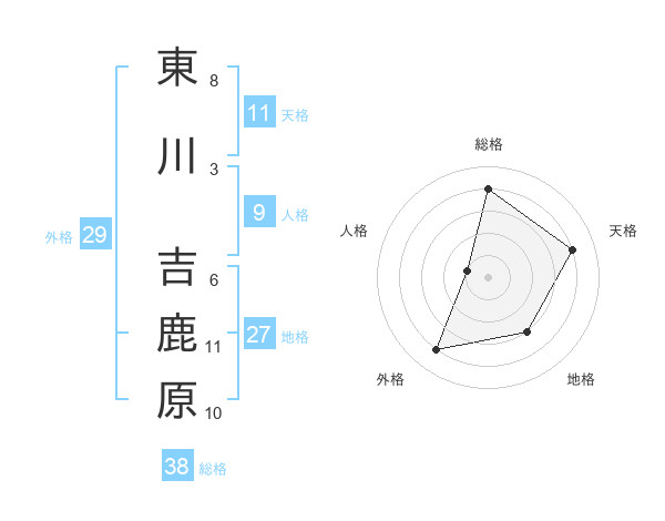 東川 吉鹿原さんを姓名の画数から五運を鑑定