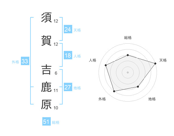 須賀 吉鹿原さんを姓名の画数から五運を鑑定