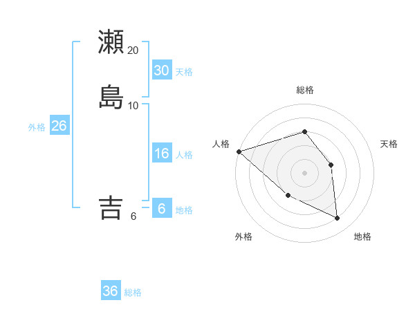 瀬島 吉さんの総格は36画の3点!
