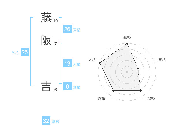 藤阪 吉さんの地格は6画の4点!