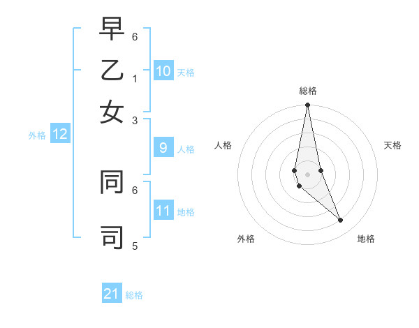 早乙女 同司さんを姓名の画数から五運を鑑定