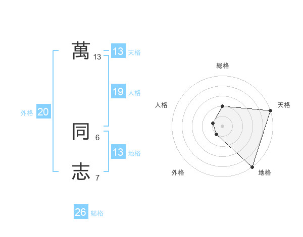 萬 同志さんの総格は26画の2点!