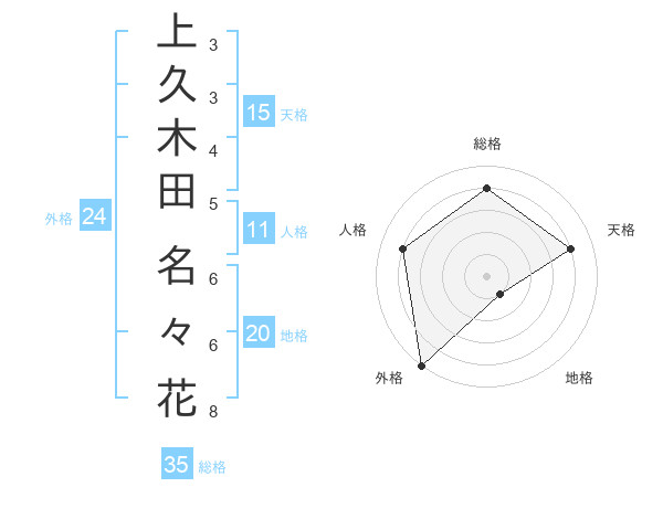 上久木田 名々花さんを姓名の画数から五運を鑑定