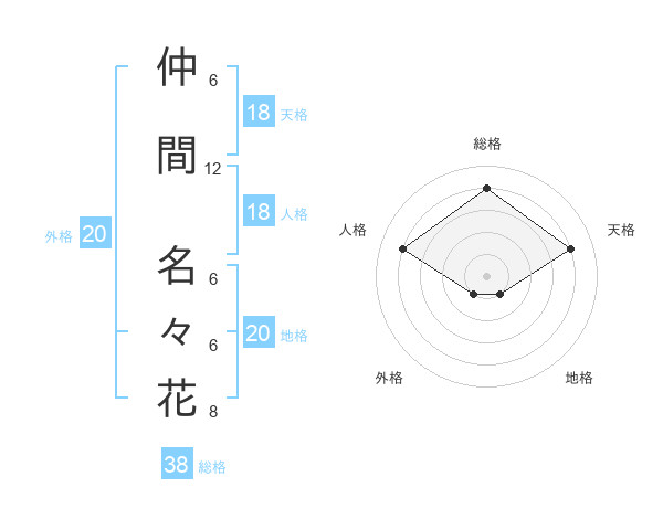 仲間 名々花さんを姓名の画数から五運を鑑定