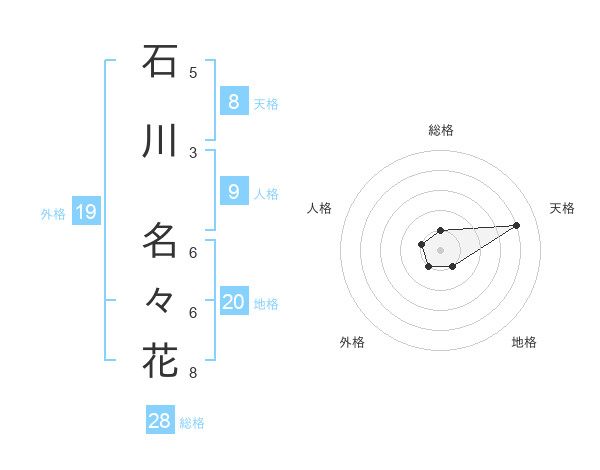 石川 名々花さんの総格は28画の1点