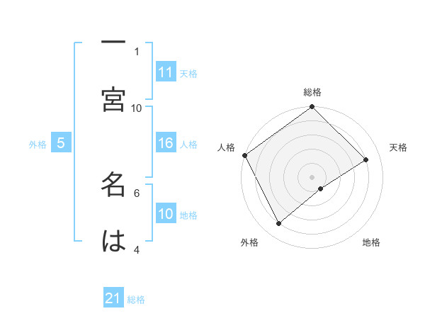 一宮 名はさんの総格は21画の5点!