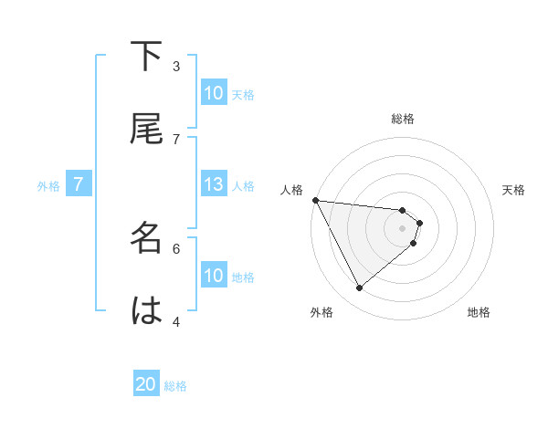 下尾 名はさんの総格は20画の1点!