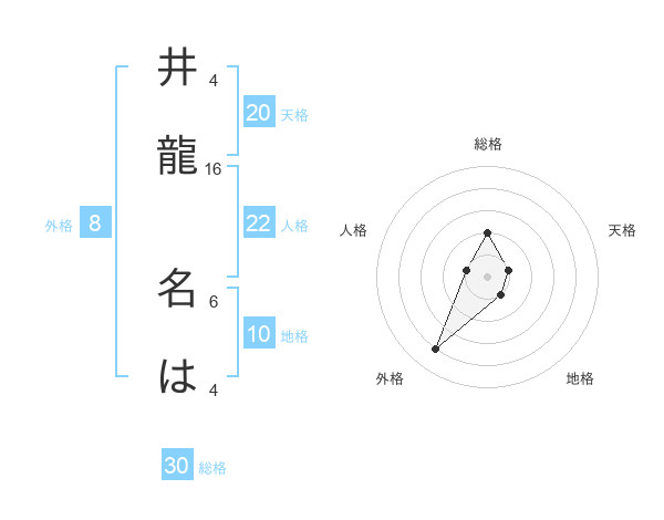 井龍 名はさんの外格は8画の4点!
