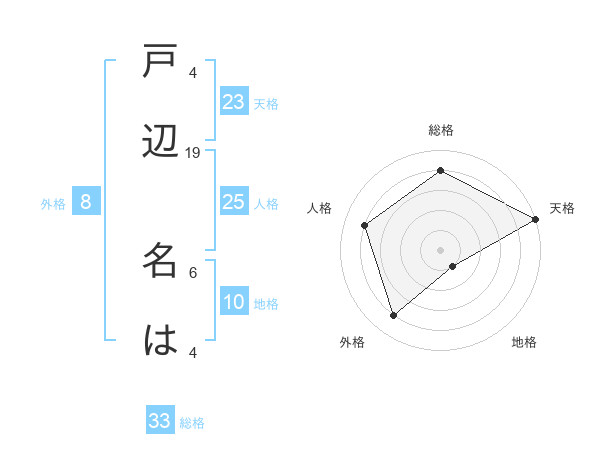 戸辺 名はさんの天格は23画の5点!