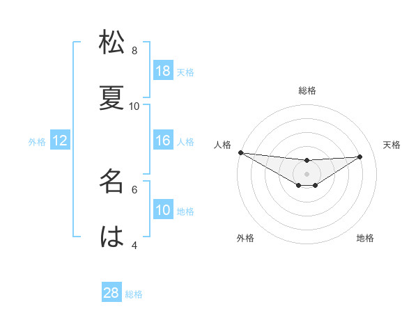 松夏 名はさんの天格は18画の4点!