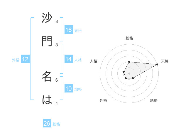 沙門 名はさんの総格は26画の2点!