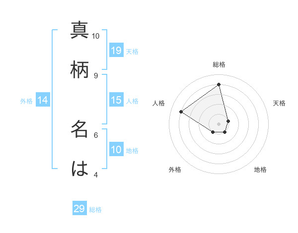真柄 名はさんの総格は29画の4点!