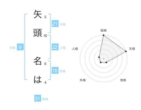 矢頭 名はさんの天格は21画の5点!