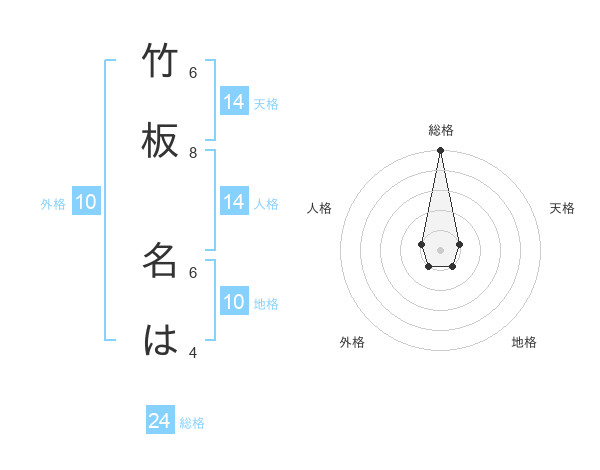 竹板 名はさんの総格は24画の5点!