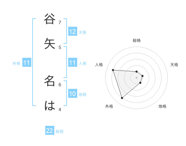 谷矢 名はさんの外格は11画の4点!