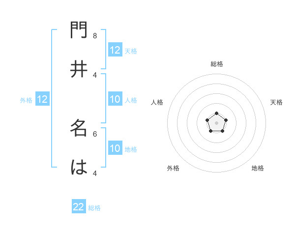 門井 名はさんの総格は22画の1点!