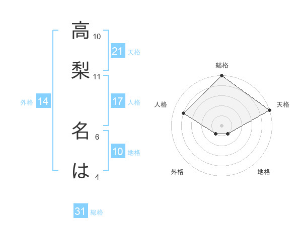 高梨 名はさんの総格は31画の5点!