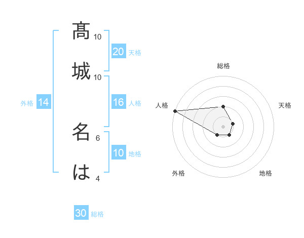 髙城 名はさんの総格は30画の2点!