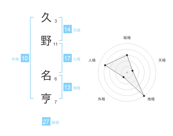 久野 名亨さんの総格は27画の3点!