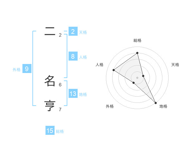 二 名亨さんの地格は13画の5点!