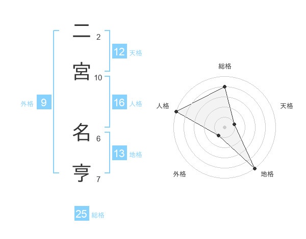 二宮 名亨さんを姓名の画数から五運を鑑定