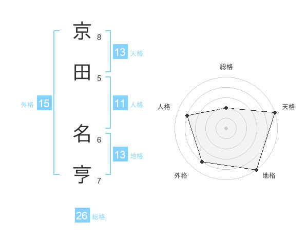 京田 名亨さんの天格は13画の5点!