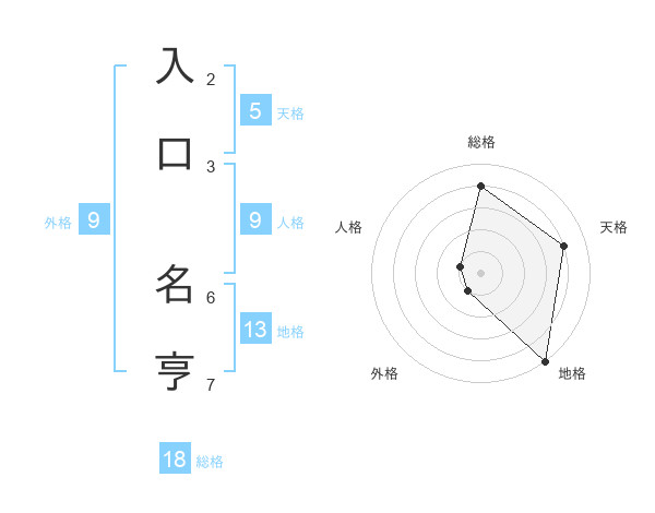 入口 名亨さんの総格は18画の4点!