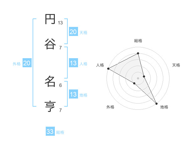 円谷 名亨さんの地格は13画の5点!