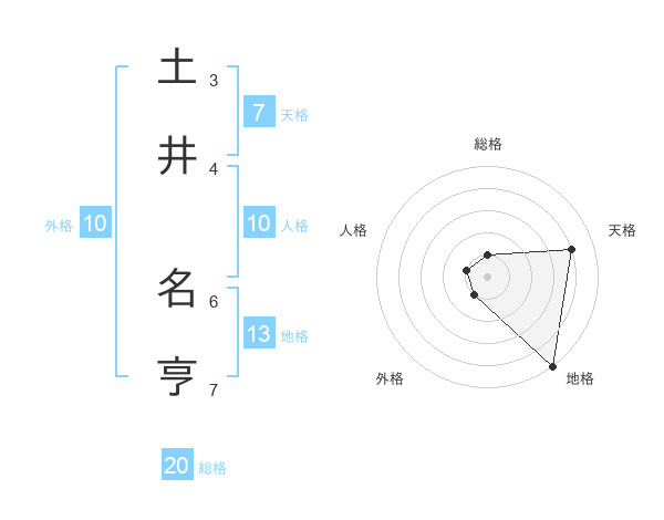 土井 名亨さんの地格は13画の5点!