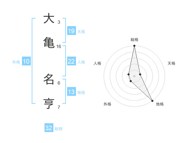 大亀 名亨さんの総格は32画の5点!