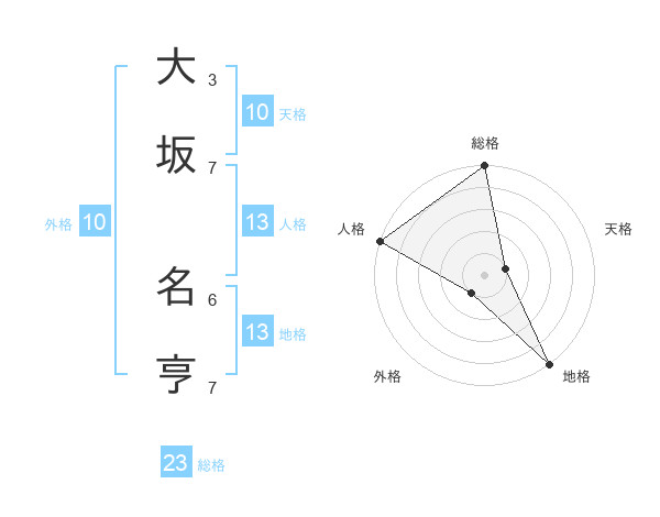 大坂 名亨さんの総格は23画の5点!