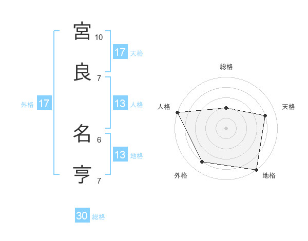 宮良 名亨さんの地格は13画の5点!