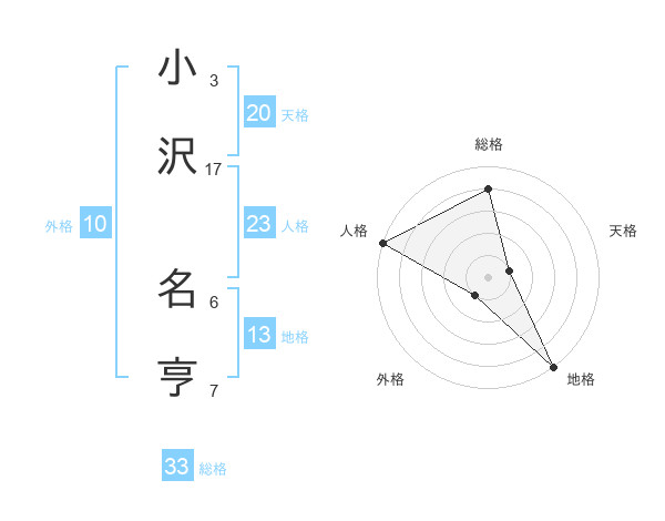 小沢 名亨さんを姓名の画数から五運を鑑定