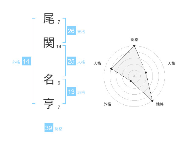 尾関 名亨さんを姓名の画数から五運を鑑定