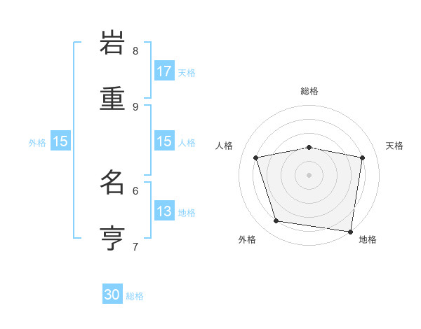 岩重 名亨さんの地格は13画の5点!