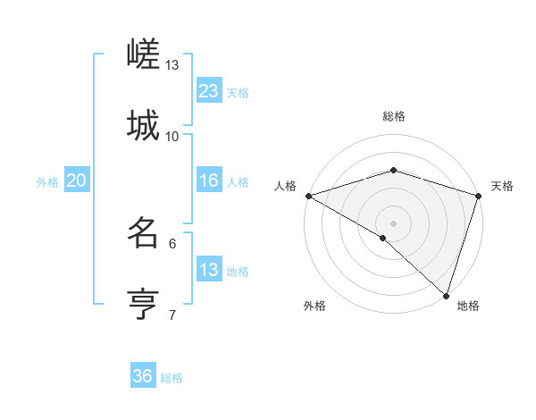 嵯城 名亨さんを姓名の画数から五運を鑑定