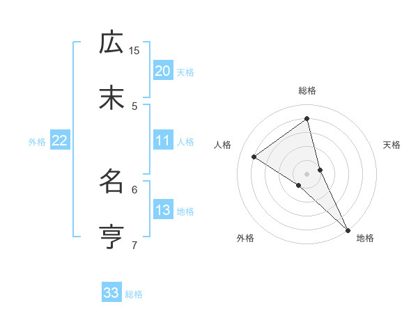 広末 名亨さんの総格は33画の4点!